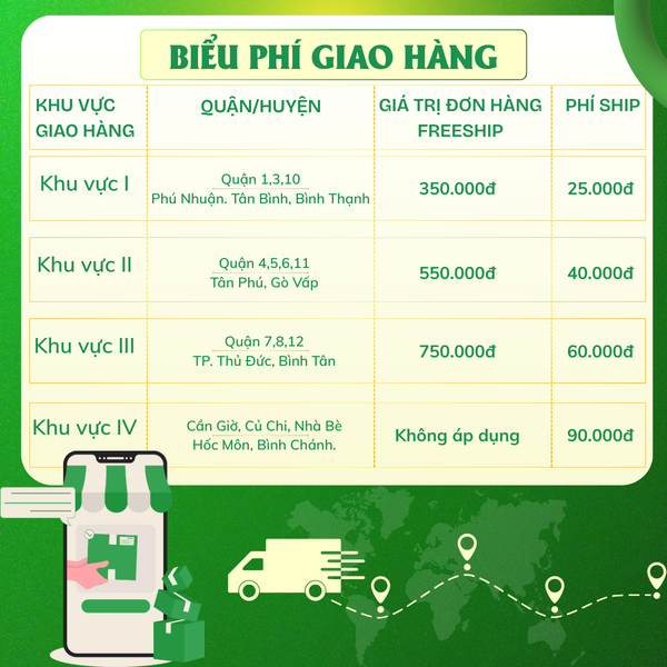 Khung giờ giao hàng: 08h00 – 16h00 hàng ngày.